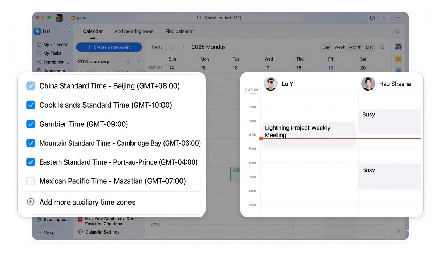 When scheduling meetings, overlapping appointments can be minimized as much as possible, with support for cross-time-zone scheduling.